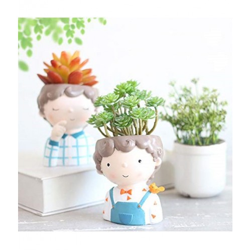 Home Artists - Set of 2 - Boy Combo Handicraft Container Succulent Flower Plants Pots Living Room Resin Planter Pottery