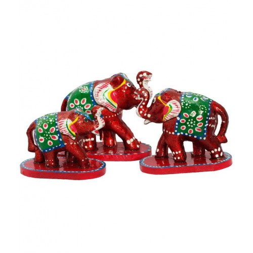 This handcrafted elephant is a set of 3 piece elephants made of Chinese Paper Mache art. They have been decorated with enamel paint and lacquer polish. The size of the elephants is in increasing order of 2.5 inch 3 inch and 3.5 inch.