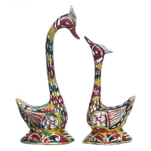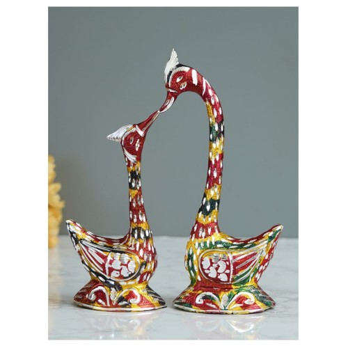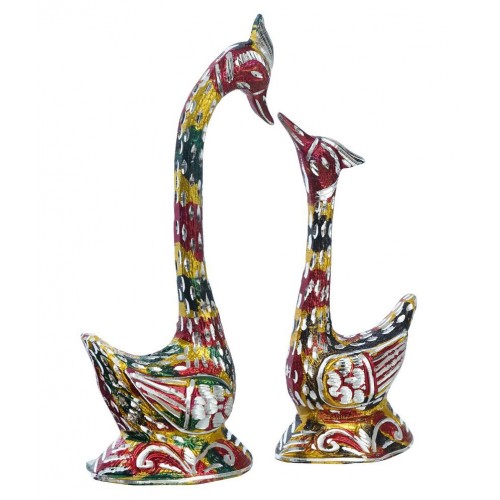 Cuteness at its peak! eCraftIndia 10.5 Inch Coloful Kissing Swan Couple Handcrafted Decorative Figurine depicts their tremendous love for each other. Every act of birds seems cute but these are something more than that. You may have not seen the cute pose of birds kissing in real but our artisans at eCraftIndia have made those lovely eye catching moments here! This showpiece depicts love birds expressing their love just like humans do. It serves as a great gift, especially to newly married couples and collegues. This handicraft has been made by skilled artisans from the house of eCraftIndia using various traditional techniques.