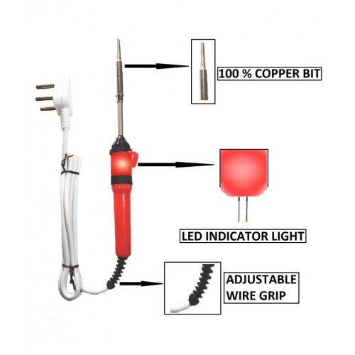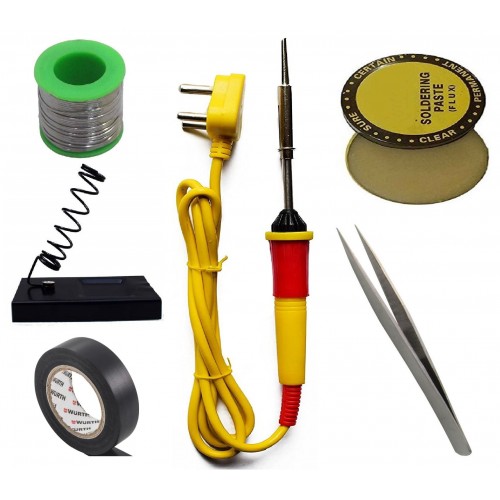 25 Watt Soldering Iron for General Purpose use not for heavy duty works. It comes in light weight with 3-core power cord 1.5 meters. Attains working temperature in a matter of few minutes. It has constant Tip temperature, Polypropylene handle for a better quality body and Low current leakage. High-Quality 25W Iron with Copper Soldering 25W Bit with Chrome Finish for Light Works and used for various purposes like home DIY soldering (hobby crafts), electronic projects, repair jobs (appliances, computer, cellphones, etc.), simple wiring of small appliances, educational projects (learning and practice soldering), development of simple electronic circuit boards, wire connections and reworks, workshops, etc. Durable elements but not for heavy industrial use. This is great kit having all necessary tools for beginners who wants to learn soldering or it's related work or projects. Best suitable for day to day soldering requirements. It offers a basic soldering experience and the most affordable and used soldering iron for the customers. It offers advance heating, ease of use and provide effective results to its users.