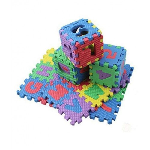 multi-color Eva mats for kids- 26 pcs- a to Z alphabet and 1-10 numeric which acts as a soft floor surface for new born babies and children to play on from birth to school. The cushioned surface ensures a soft landing for rolling, tumbling and falls. All the 36 pcs are detachable and convenient to carry. Ideal for little children, or grown ups, adults for indoor- home usage, can be used in kg schools as well as outdoor picnic. Its water proof, easy to clean, flexible and soft. Its great for use while playing video games, watching movies. Its very easy to clean with wet cotton cloth. It sparks curiosity, learning & development for babies of 12 months plus which makes a fantastic baby gift. Give your wiggly little explorer a soft, safe place to play with this adorable baby play mat! Dual sides provide plenty of entertainment while fostering baby's learning & development. New parents rarely realize how quickly their little ones will be squirming around and crawling away. Children will get tone of recognition practice with its double sided design. Allow them to hone in their developmental skills on a safe and comfortable surface with this product.