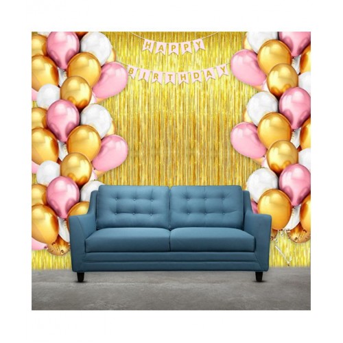 Banner (1 set),Foil Fringe Curtain (2 pcs),30 Metallic Balloons (Golden ,Pink and White) |