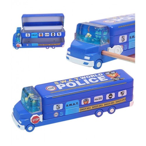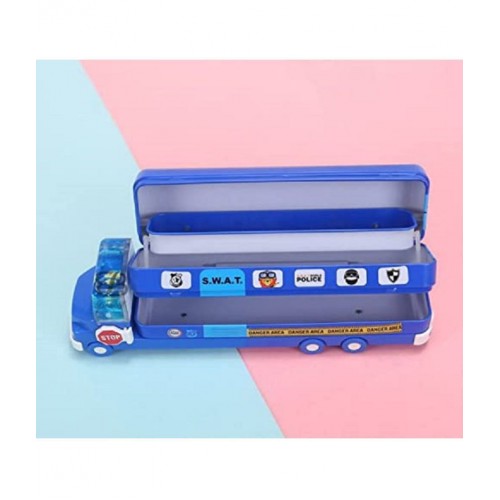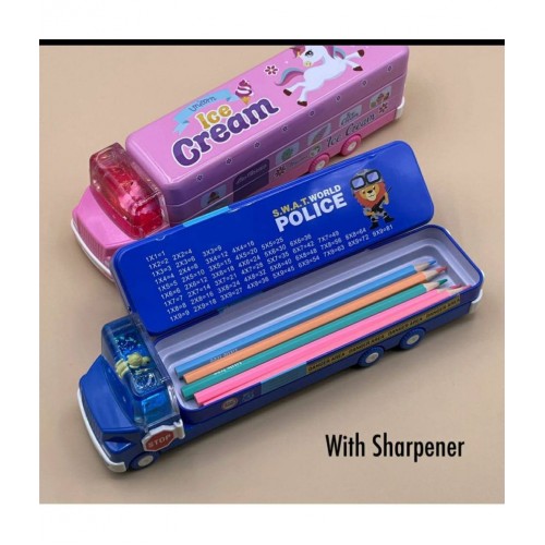 AdiChai Toys - It's a metal pencil box use as a toy, it has moving tires to run the school bus, this unique box can accommodate all the necessary stationery that your child would need to carry to school with separate slots for pencil, rubber, eraser, geometric set, easy to use and can fit in the school bag easily its an ideal gift for your kid, pencil boxes are printed with favorite cartoon characters of kids.