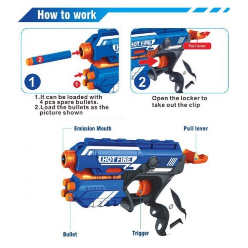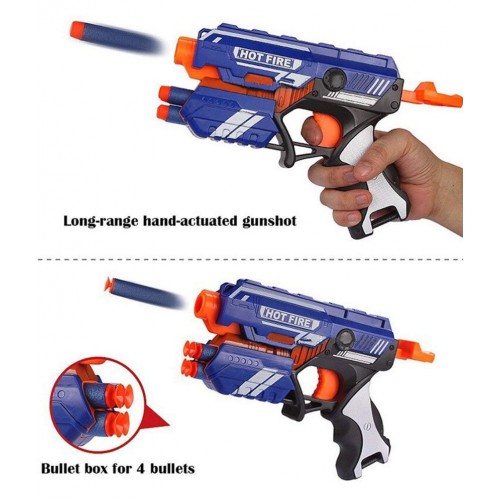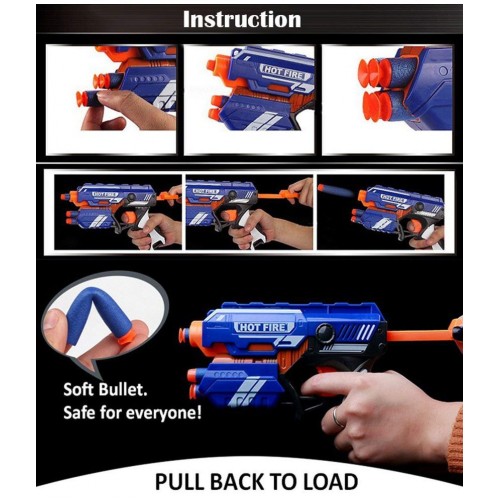 Have a great shooting dart game with this Blaze Storm Manual Soft Bullet Gun. Kids will love to fire soft foam bullets and suction darts and hit an imaginary target. Or you can make a target board yourself and sharpen your shooting skills. This Gun is easy to operate - load the soft bullets or suction darts from the front muzzle, pull the lever at the back, trigger and fire. The Magazine can load 4 foam bullets at one time to make the action look all the more real. It is Super Exciting and Super Cool Shooting Fun for the whole family, right in the cozy indoors!! Ideal for kids ages 6+ years.