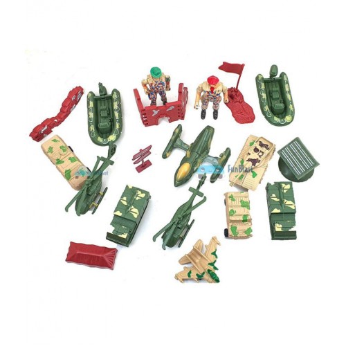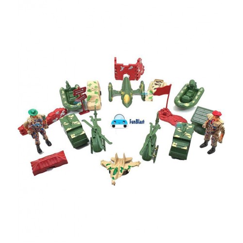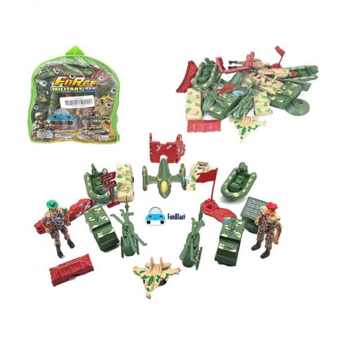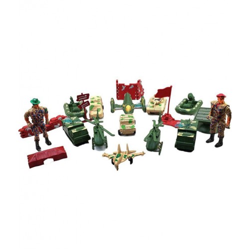 Military Set includes 2 army men, a variety of vehicles, forts, barricades, tents and other accessories to keep children engaged for hours on end. These Army Rescue set are Authentically Styled for Realistic Fun. MILITARY SET-They are Great Tools for Kids to Learn about Military. Child will love engaging in endless role-playing fun as he serves in the army to defend his country with multiple army men toys. MILITARY VEHICLES. A perfect addition to any boyâ€s vehicle collection, this military set includes a variety of different vehicles to enhance the fun. From tankers and jeeps, to helicopters his collection will be complete. STORAGE BAG: This set of action figures and army toys for boys comes with a plastic bag for easy storage and transport of all 22 pieces. It has a zipper backpack for easy transport from one location to the next. DURABLE CONSTRUCTION. These Army Rescue set are Authentically Styled for Realistic Fun. They are Great Tools for Kids to Learn about Military. You can use them for decorating your children's room.