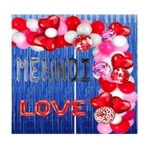 This super trendy decoration combo is specially designed for your loved ones and spread love, glitter, and happiness around you. These items are Non-toxic, eco-friendly and safe to be used around children." * 1 Mehendi silver Foil Balloons, 1 Red LOVE Foil Balloons, 2 Pcs Blue Metallic Foil Curtains ,5 Pcs Pink and 5 Pcs Red Confetti Balloons, 10 Red and 10 White 10 pink Metallic Balloons, 4 Pieces Red HEART Foil Balloons * 100 % high premium quality products *Easy to use and easy to carry * long lasting and kids friendly * Pocket saver and Attractive.