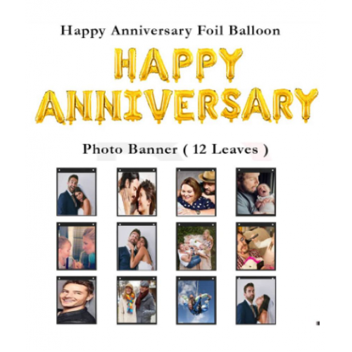 Blooms Event Presents Combo in which you will gets: Happy Anniversary (Golden)+Photo banner.This beautiful anniversary decoration balloon can be used for selfie.This super trendy decoration combo will create shine and glitter in your party . "*Happy Anniversary (Golden)+Photo banner
