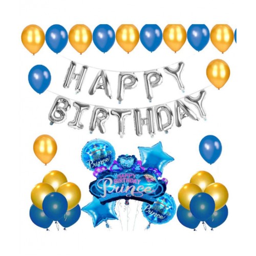 Blooms Event Prince Theme Birthday Decoration Kit 36Pcs Set for Husband Boys Balloons Decorations Items Combo with Blue Prince Foil Balloon, Happy Birthday Balloon, Metallic Balloons