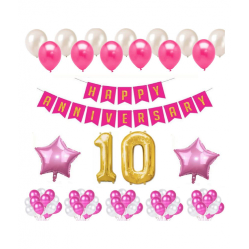 *1 Pink Anniversary Banner , selective numeric no. foil , 2 Pink Foil Star, 50 pcs ( Pink and white ) Metallic Balloon * 100 % premium quality product * Long lasting and easy to décor your place * Attractive and eyecatchy item