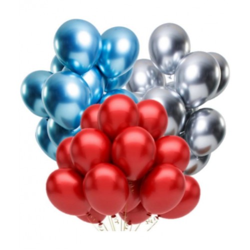 Blooms EventPresents Combo in which you will get Red,Silver , Blue Color Metallic Balloon pack of 51 pcs\nThis super trendy decoration combo is specially designed for your loved ones and spread love, glitter, and happiness around you. These items are Non-toxic, eco-friendly and safe to be used around children.