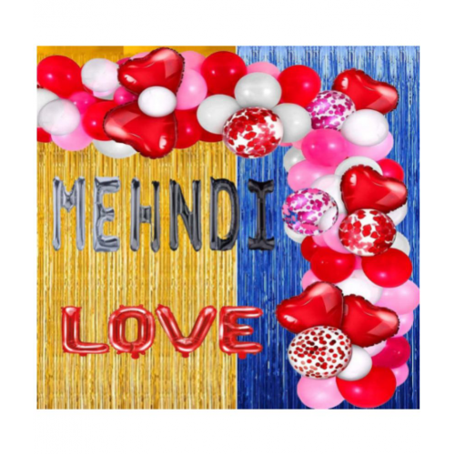 This super trendy decoration combo is specially designed for your loved ones and spread love, glitter, and happiness around you. These items are Non-toxic, eco-friendly and safe to be used around children." * 1 Mehendi silver Foil Balloons, 1 Red LOVE Foil Balloons, 1 Pcs golden Metallic Foil Curtains1 Blue ,5 Pcs Pink and 5 Pcs Red Confetti Balloons, 10 Red and 10 White 10 pink Metallic Balloons, 4 Pieces Red HEART Foil Balloons * 100 % high premium quality products *Easy to use and easy to carry * long lasting and kids friendly * Pocket saver and Attractive.