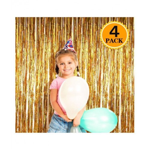 Blooms Mall Golden Metallic Foil Curtain Pack of 4 for happy birthday decoration item, birthday decoration kit, birthday balloon decoration combo for Boys, Girls, Kids, husband and Wife.