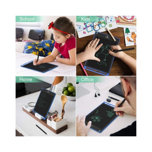 LCD Drawing Pad: It can be used for multiple activities like: Writing, List Making, Memos, Reminders, Play games like crosses and noughts,You can use the stylus, any pencil or even finger on the surface.Tablet displays your notes until you erase them with the touch of a button.One-touch button erases notes instantly.Erase button of writing tablet make it reusable as the equivalent sheets of paper. No mess or wasted paper! Paperless designed drawing board is without electromagnetic radiation. Writing or drawing with pressure, writing stylus or any other instrument even your fingernails.Suitable for kids writing, drawing, painting, office memo board, fridge message board and can be used as a communication tool. Perfect gift for Kids and Friends.
