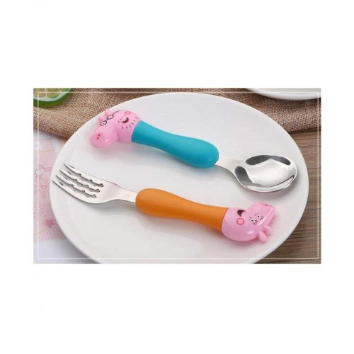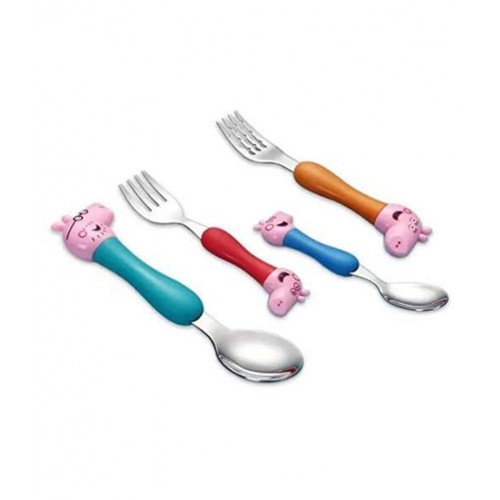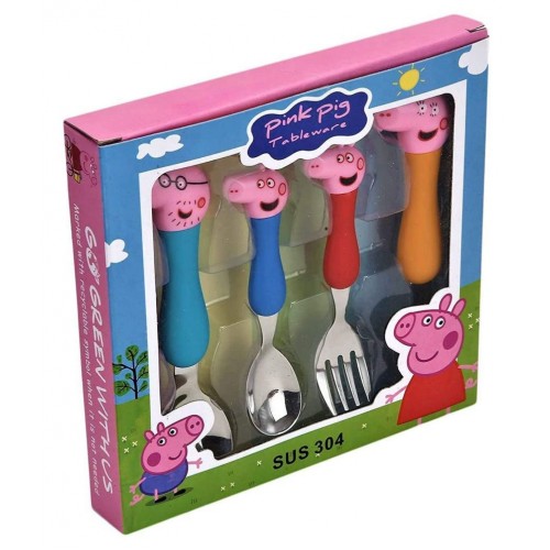 Esmi Peppa pig Stainless Steel Kids Cutlery Set | Feeding Spoon and Fork Cutlery | Peppa Pig Family Cartoon Character Theme Set of 4
