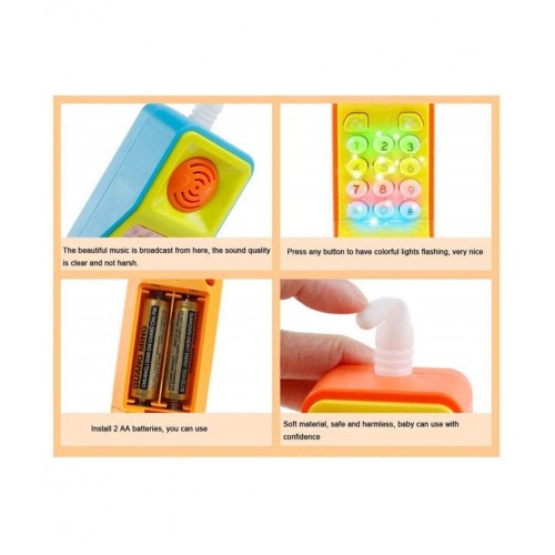 FRATELLI brings for you The little Mobile Phone toy for kids. This little cute mobile phone comes with colorful light effects and musical sound. Very adorable design and comes very bright colors to keep kids engaged and entertained. Press the different buttons can hear different sound and music. Stimulate your children's interest in learning, encourages. Educational kids toy, introduce role-play and hand-eye coordination. Keep little one entertained in a big way with a pretend play mobile phone can easily learn about numbers. This musical mobile phone is made from a high quality of plastic material. Perfect gift as an educational toy.