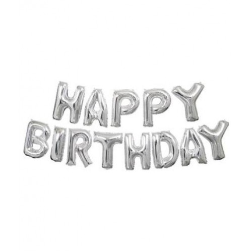 GNGS Happy Birthday Letters Foil Balloons (Silver) + Pack of 50 Party Decoration Balloons (Red & White)