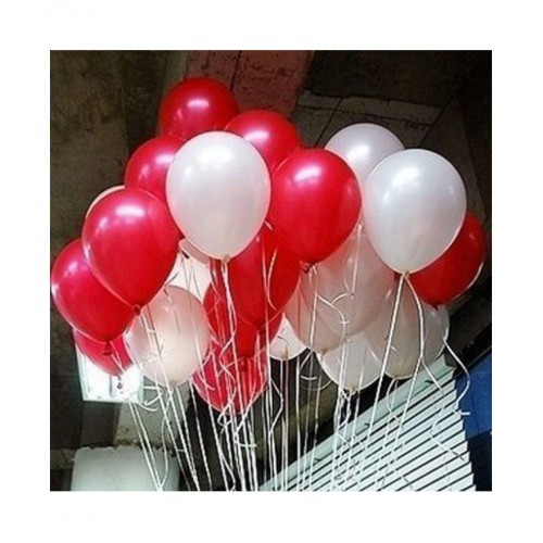 GNGS Happy Birthday Letters Foil Balloons (Silver) + Pack of 50 Party Decoration Balloons (Red & White) |