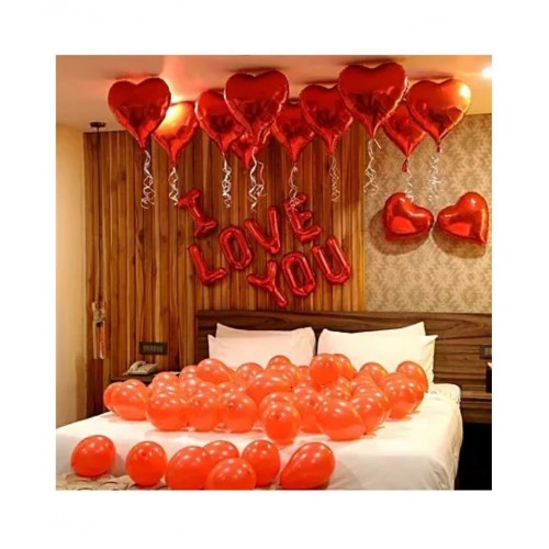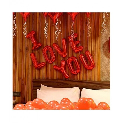 GNGS "I LOVE YOU" Letters Foil Balloons (Red) + 2 Red Heart Foil Balloons + 50 Red Party Decorations Balloons |