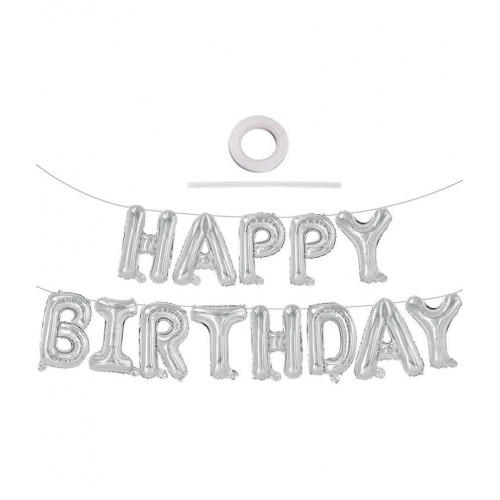 Package Contents 42 pc Premium Blue, Silver and Black Balloon, 1 pc Silver Happy Birthday Foil Balloon (13 Letter), 1 Glue Dot, 1 Air Pump