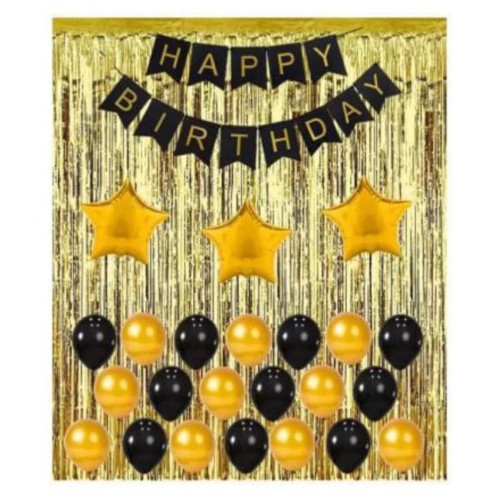 Happy birthday banner 13 letter in black golden color ,50 pcs black and golden metallic balloons , 3 pcs star foil balloons ,set of 68 pcs
