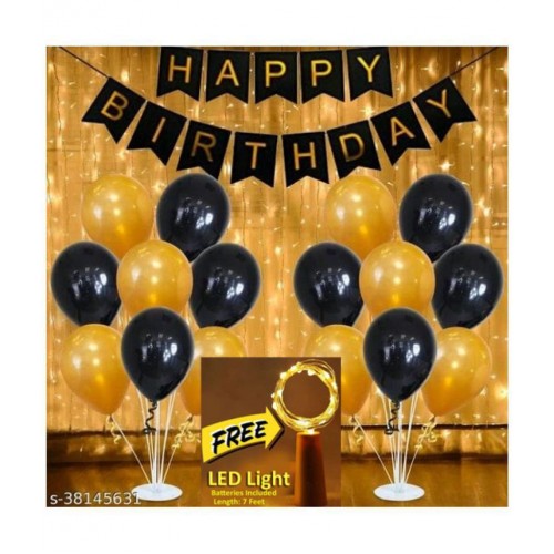 • Happy Birthday Banner (Black)+ 30 HD Metallic Balloons (Gold, Black) + FREE 1 pc. LED Light With Battery (7 Feet)