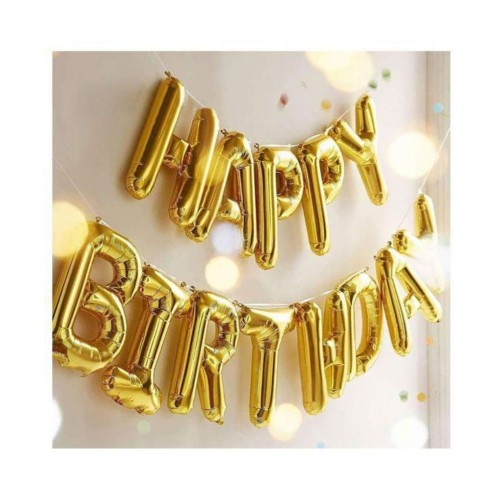 Happy Birthday Foil Balloons for Birthday Decoration (Gold, 13 Letters 16 inch Alphabet Banner)