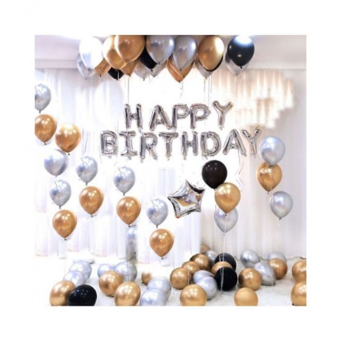 Happy Birthday Letter Foil Balloon Set of Silver + Pack of 51 HD Metallic Balloons (Gold, Black and Silver) |
