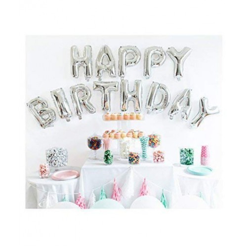 Happy Birthday Letters (Silver) Toy Foil Balloon+30 Pink Metallic Balloons