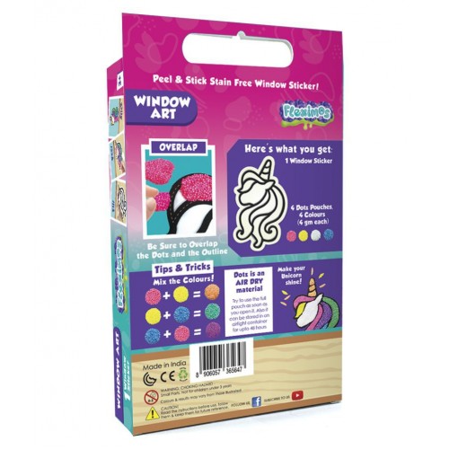 With Unicorn, your child can now create their own little playful Unicorn while enjoying the craft activity! Children love to play with colours and clay. And being able to create their own little awesome Unicorn using fabulous colours of the easy to use Dotz clay is just so exciting. This Pack comes with 1 Sticker and 4 vibrant colours. The selection of 4 colours are perfect for the theme. The whole activity is so easy that even 3 year olds love it – just fill, peel and stick. Once the stickers are made, just turn them upside down and gently peel off the silicon paper. Place the stickers on to any smooth surface like, glass, mirror or tile. Once you’re ready to change the look of your room, you can simply peel off the sticker and place a new one! Dotz is an AIR DRY material. We have packed it in small pouches to help you consume a whole pouch once you open it . In case you wish to save an opened pouch, be sure to pack it in an air tight container (it can last for 48 hours). Unicorn Window Art is a great indoor activity for the kids. It is a great option for party gifts or return gifts as well.