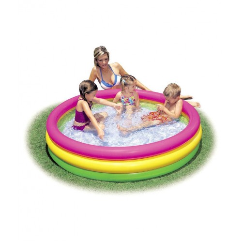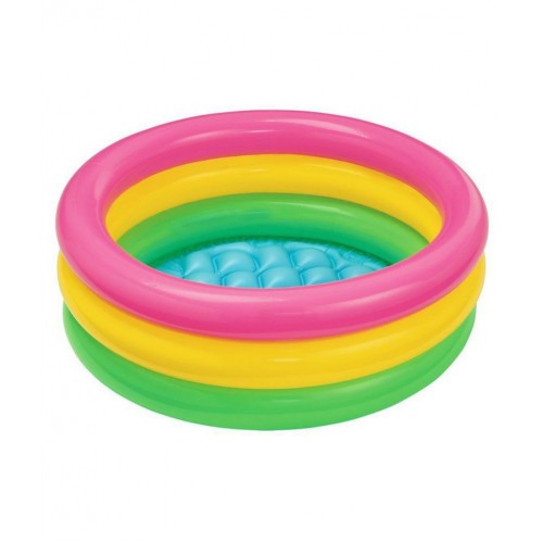 Attractive, Sturdy and Colourful With the broad rings in bright shades of pink, yellow and green, this pool will be a definite attraction for your kids. Your little one will never want to get out of this inflatable baby pool. You can also conveniently fill this round swimming pool with warm water to prevent your child from catching a chill. Install this lightweight pool in your bathroom or lawn. It comes with a repair patch that can be used in the unfortunate case of a puncture. You can buy this multi color baby pool online and watch your little one squeal and splash in delight.
