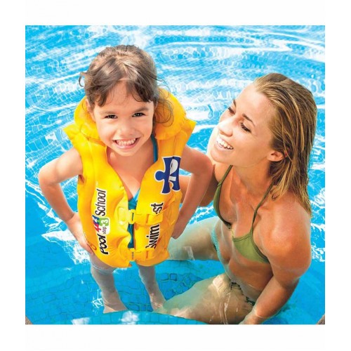 A Must-Have Swimming Companion Let your kid enjoy a relaxing and safe dip in the pool with the Intex pool school deluxe swim vest. The comfortable design of this swim vest makes it ideal for just about any water sport including boating, tubing or swimming. Made from 10 gauge high-quality vinyl, it features two adjustable, quick release buckles that make your kids feel more safe when in water. It is easy to put on and take off and comfortable to wear for most body types. With three air chambers, the kids' swim vest inflates and deflates easily. Durable and Attractive Built The plastic closures of the pool school deluxe swim vest are rugged and completely safe whereas the closed side design allows plenty of mobility in water. Designed for advanced swimming lessons, it helps keep children afloat while they learn the right strokes to help them move in water. The vibrant yellow styling of the swim vest gives it a contemporary and attractive look. Moreover, as this pool swim vest for kids is made from durable vinyl, it makes a long term swimming companion of your young one.