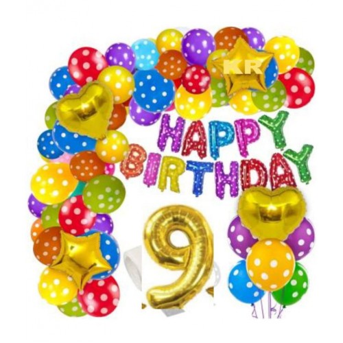 KR 9TH Birthday Decorations Kit for Boys and Girls- 57+1=58pcs 9TH Happy Birthday Balloons Set with Foil Balloon, Latex & Metallic Balloons, Balloon Arch & Glue Dot /9th Happy Birthday Decoration Kit (Set of 58)