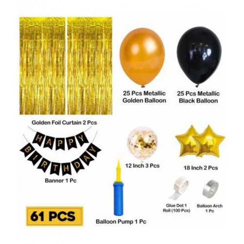 KR Happy Birthday Decoration Kit Combo - 61pcs Birthday Banner Golden Foil Curtain Metallic Confetti Balloons With Hand Balloon Pumo And Glue Dot for Boys Girls Wife Adult Husband Mom Dad/Happy Birthday Decorations Items Set