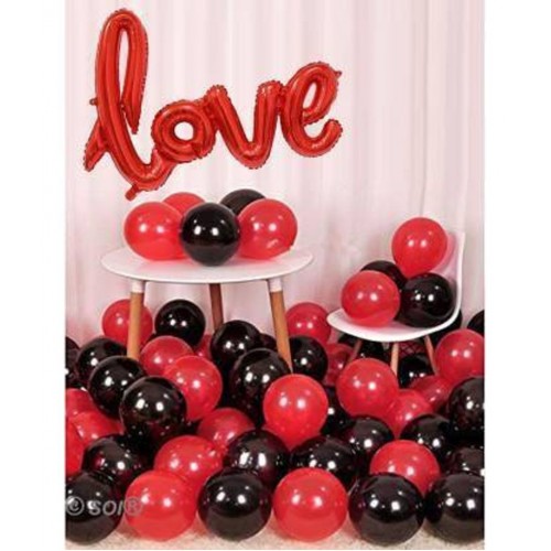 In this Pack - Cursive Red LOVE Foil Balloons 16 inch (1 Pcs)+ Red and Blaock Metallic Balloons 31Pcs - (Pack of 31)