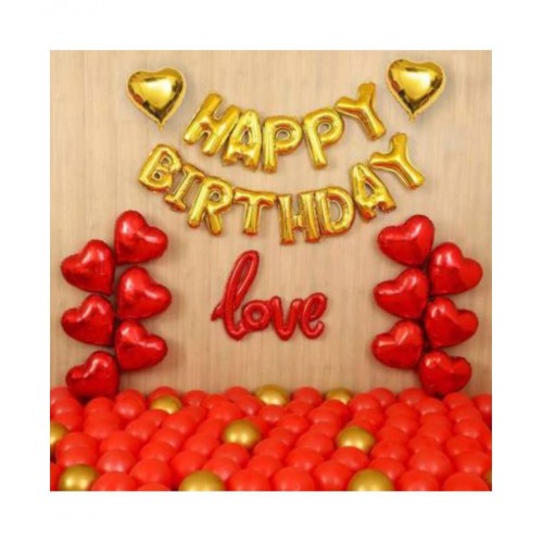 KR Solid Solid Happy Birthday Foil Balloon Set Of 88 Balloons 13 Happy Birthday Gold Foil Balloon 1 Red Love Cursive 2 Gold 12 Red Heart Balloon 50 Red 10 Gold Metallic Balloon Balloon (Red, Gold, Pack of 88)