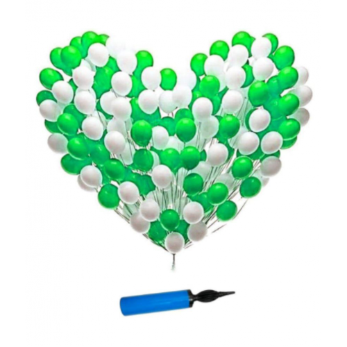 (1). Package Includes: 50 Green & 50 White Balloons with 1 Balloon Pump.