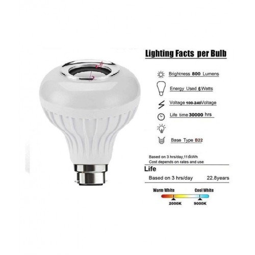 Music and Light Bulb, E27 & B22 LED Light Bulb With Bluetooth Speaker RGB Self Changing Color Lamp Built-In Audio Speaker