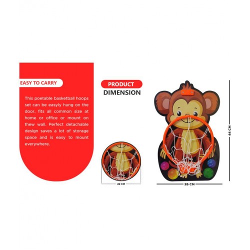 BASKET BALL KIT FOR KIDS Basketball is a sport played by two teams of five players on a rectangular court. The objective is to shoot a ball through a hoop mounted to a backboard at each end. Basketball is one of the world's most popular and widely viewed sports. It’s a nice kit containing wooden basket board, basket ball. This basket board can be easily hanged against wall. Kids will enjoy the real basket ball game indoors . Easy to use just hang it on wall Comes with Small Ball Please Note : This is a toy not a real basket ball set best for a small kid for playing BASKETBALL KIT Sturdy & fine finish. Ideal sporting junior game. Aids hand-eye coordination.. For ages 4 to 10 yrs.