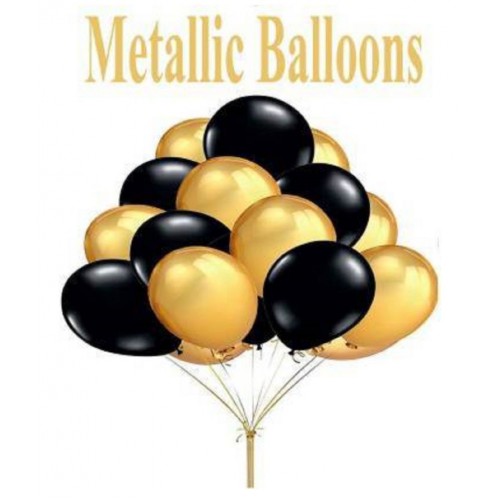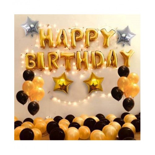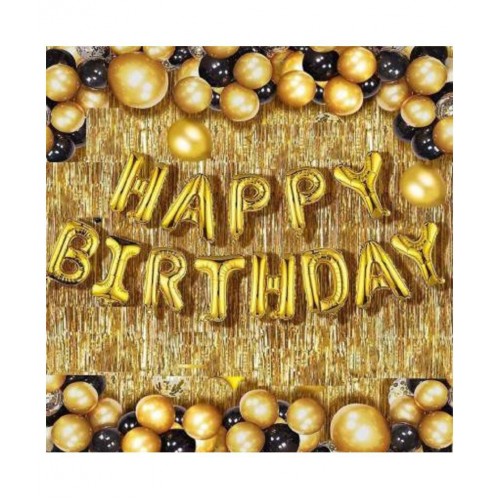 50 BALLOONS GOLDEN AND BLACK AND 13 ALPHABETS OF HAPPY BIRTHDAY |