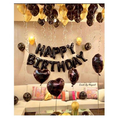 Party Plus Happy Birthday Letter Foil 13 Balloons (black ) and 50 HD Mettalic Balloons (gold & black) + 1 ribboon & 1 straw.