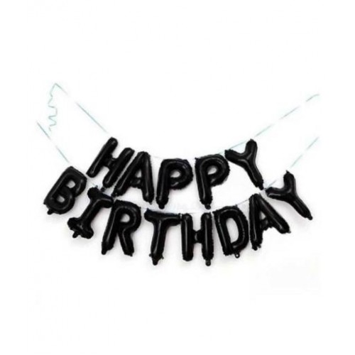 Party Plus Happy Birthday Letter Foil 13 Balloons (black ) and 50 HD Mettalic Balloons (gold & black) + 1 ribboon & 1 straw. |