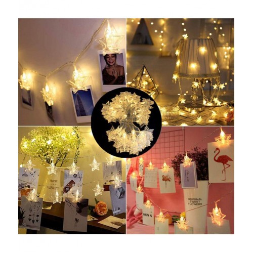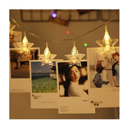 Stylish photo clip String light has 10Pcs star clips.In each clip there is an LED lamp beads, which is not easy to fall off. They emit comfortable warm white light, which is very warm and romantic in home decoration, commercial decoration and wedding decoration.Battery Operated: The lights operated by battery which requires 2 AA batteries (not Included you need to buy it) each set includes a small battery box with ON/OFF button.Not only for indoor use anywhere,but also safe for outdoor use in a covered area.Create Romantic Atmosphere-- Each LED bulbs equipped with a transparent clip which can nip photo or other small Items creating excellent illumination and a warm atmosphere, spreading light and cheer across a wide area.Party Propz Clip Light with a total length of 2 meters / 85 inches, it comes with 20 transparent clip lights & distance between two clips is 15 CM. which can hold photos, postcards and some light and small objects. These photo clips can be used for anyone birthday decoration like girls, boys, kids, teenage, wife, couple, husband or happy anniversary decorations. These photo clips are waterproof. Use it with star light, bottles light, candles, gold curtain lights, electric optic fibre, ceiling decor, balcony strip lights, rope rice lights, colourful changing strip light, letters box,wooden clips or different decorating strips.You can decorate walls, balcony, backdrop, bed frame or anything with this unique photo light clip.Set the ambient right.Quirky Photo clip frames can be a great gift for friend, daughter, sister, brothers, boy,dad, mom, girl etc. This is a perfect picture hangings garlands decors for birhday, You can create a photo banner and hang on any window curtains, A perfect fancy latest innovative craft for love ones !!