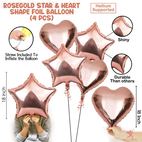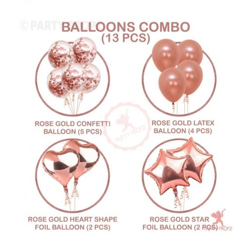 Rose gold balloons includes: 4Pcs rose gold latex balloons,5Pcs rose gold confetti balloons,2pcs star foil balloons and 2Pcs heart foil balloons. Want to capture a great birthday instagram picture?? buy this... click and post !!!