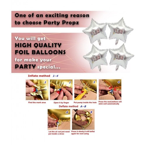 1pc Black happy anniversary banner , 12Pcs rose gold Metallic Balloons, 12Pcs silver metallic balloons, 4Pcs silver star foil balloons, 1Pc rose gold foil curtains and 1pc ribbon |