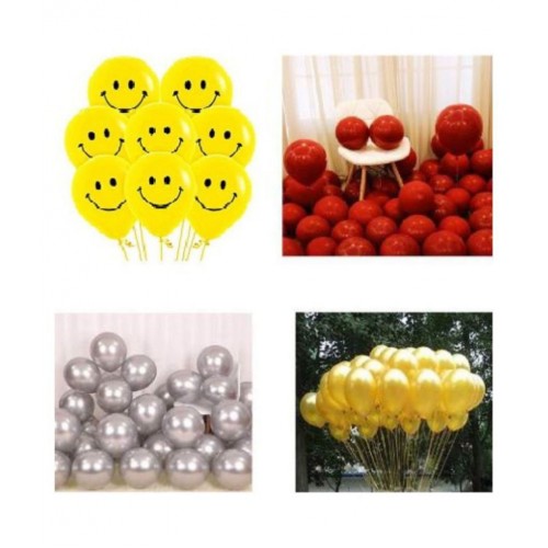 Pixelfox Complete Party Combo Balloons (Gold, Silver, Red, Smiley Yellow, Pack of 50)