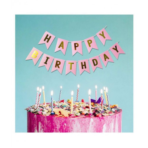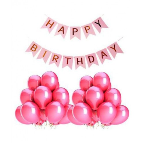 Happy Birthday Banner (PINK-GOLD) + 50 pcs Metallic Balloons |