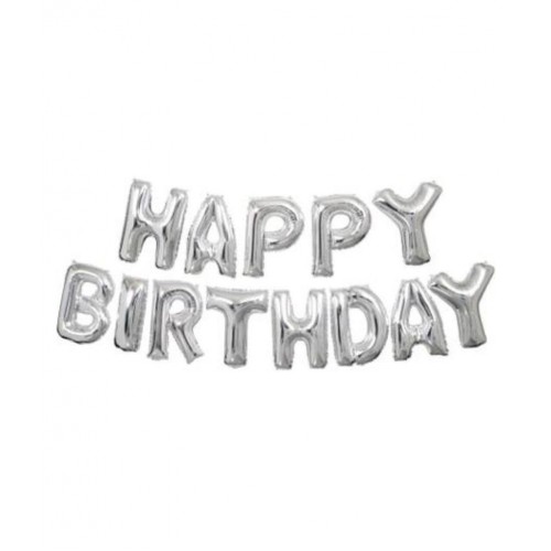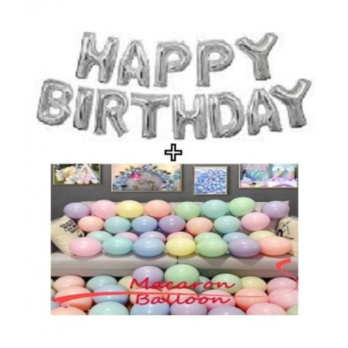 Pixelfox Happy Birthday Letters Foil Balloons Set of 13 Pcs (Silver) + Pack of 30 Pastel Colours Party Decoration Balloons (Multicolour) |