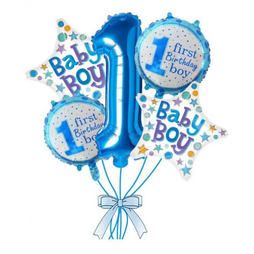 Package Includes: 1pc 28 inch Blue numeric 1 balloon, 2 Pcs circular shape and 2 Pcs Star shape balloons.