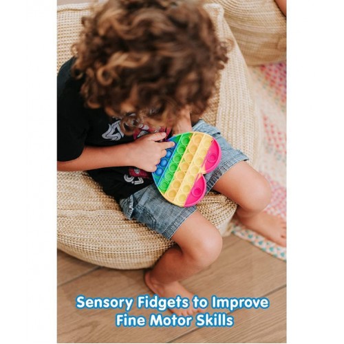 : Fidget Sensory Tools are perfect for BUILDING SKILLS THROUGH PLAY. The Rainbow Heart fidget popper is a push pop fidget toy for kids of all ages. It
