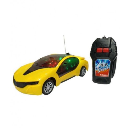 Amazing Remote Control 3D lighting Effect Racing Car With 2 Functions (Forward, Backward) For Kids.The Car Will Move In A Circular Pattern On Reverse/Back Mode. Innovative Design Nice Color And Good Design Of The Car. 2 AA Batteries Required For Remote, 3 AA Batteries Required For Car (Non Included) ., High Speed, 3+ Age, 3D light with Very attractive sports car model. • Colour yellow, red,white Design delivery as per availability.Keep the batteries out when not in use. Batteries are not included in the package. BEST GIFTING TOY.